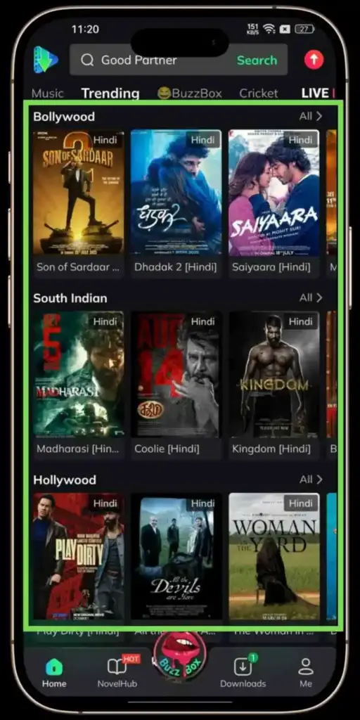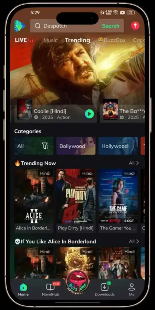 MovieBox includes a BuzzBox section where you can watch, like, post, and share viral short videos, funny memes, and trending movie scenes. It’s perfect for quick fun when you don’t want long shows.
