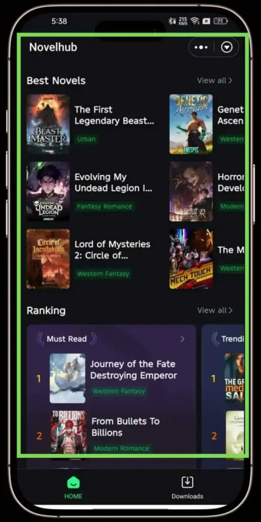 MovieBox isn’t just for videos, it also offers a NovelHub section where users can explore and read exciting stories, novels, and web fiction directly inside the app for free.