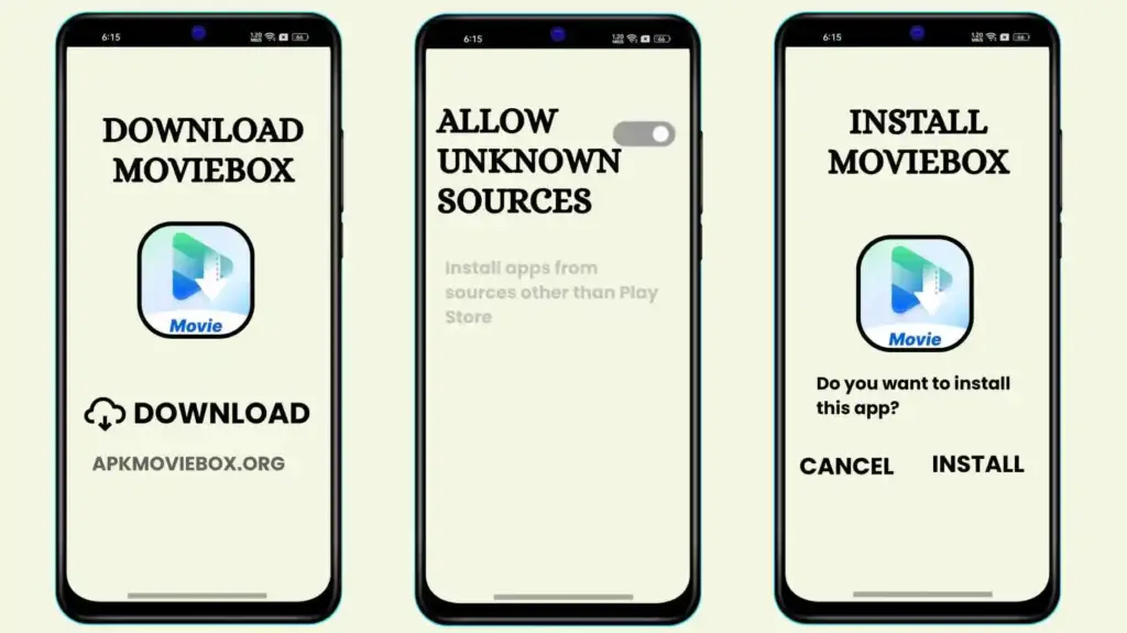 You can download the official and 100% safe version of MovieBox directly from our website (APKMovieBox.Org). Below, we’ve provided a detailed step-by-step guide to install and set it up on Android devices.