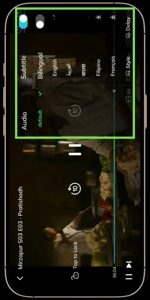 To change audio or language, start streaming any movie in the app, tap the ‘Language’ option in the built-in player, and select your desired audio or language easily.