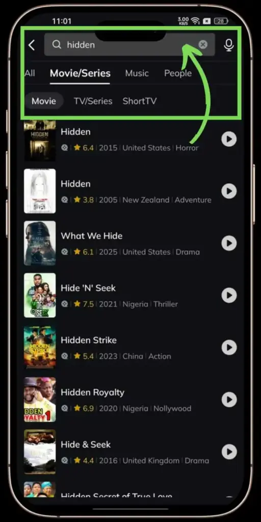 With MovieBox, you get access to 100,000+ movies and shows. Use the search bar or voice option to find any title instantly, including movies, TV series, music, people, and ShortTV.