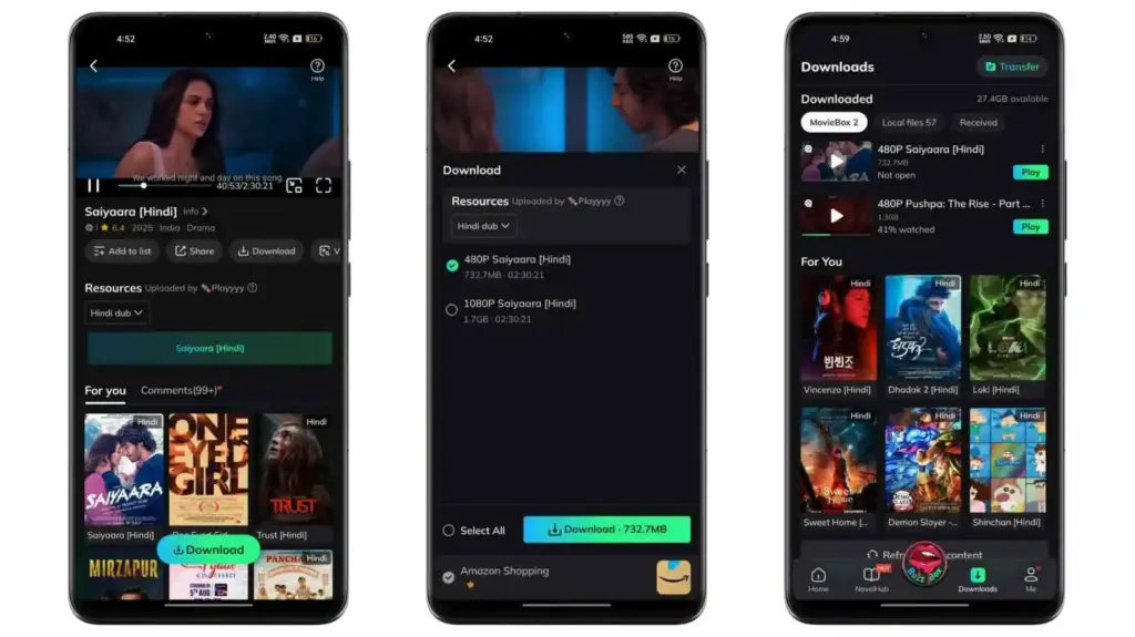 Downloading videos from MovieBox app is quite convenient. You have multiple quality options to choose from with subtitles and various audio tracks language. To properly utilize the offline playback feature, follow the given steps to learn how you can easily download full movies from this app and watch ad-free without internet.