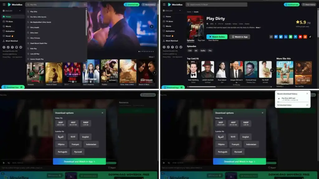 - MovieBox provides the user with high-quality downloads starting from 480p for minimal internet data to 1080p with maximum clean quality.